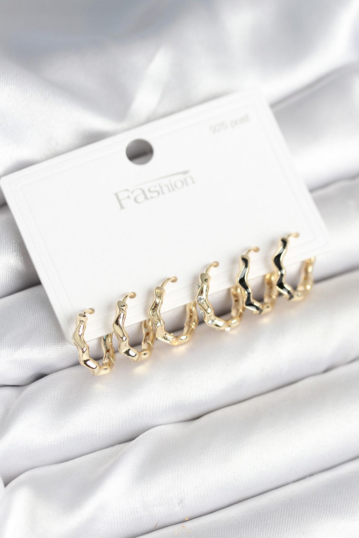 Gold Renk Pirinç Zikzak Model 925 Ayar Gümüş Çivili Kadın Küpe Seti (BKP11264)